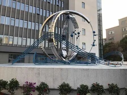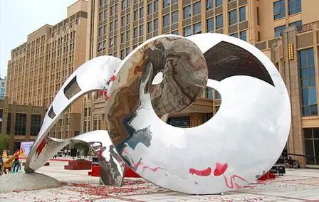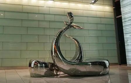说明:上海市中心商务地标雕塑,现代抽象、高反光质感,提升大堂艺术档次。